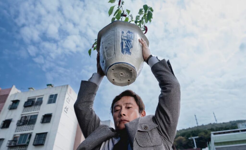 In No Other Choice, the research chemist You Man-soo (Lee Byung-hun), his wife Miri (Son Ye-jin), their two lovely children and two golden retrievers live quite comfortably—dad’s original childhood home. But when the paper company he works for suddenly downsizes, You Man-soo is fired with only three months’ severance, and everything falls apart fast. The tennis lessons and Netflix subscription are first to go, then the dogs, and finally the couple has to sell their cherished house and move to lesser digs. Man-soo sets about to get his job back by exacting the same retaliation as Don Westlake and Costa-Gavras’s deposed manager.