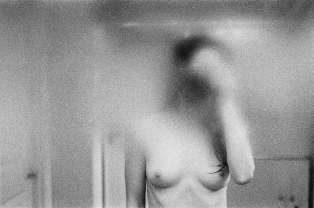 The barrier: A steamed bathroom mirror. Could I capture the softness I see in femininity through this haze, their reflection, our intimacy?